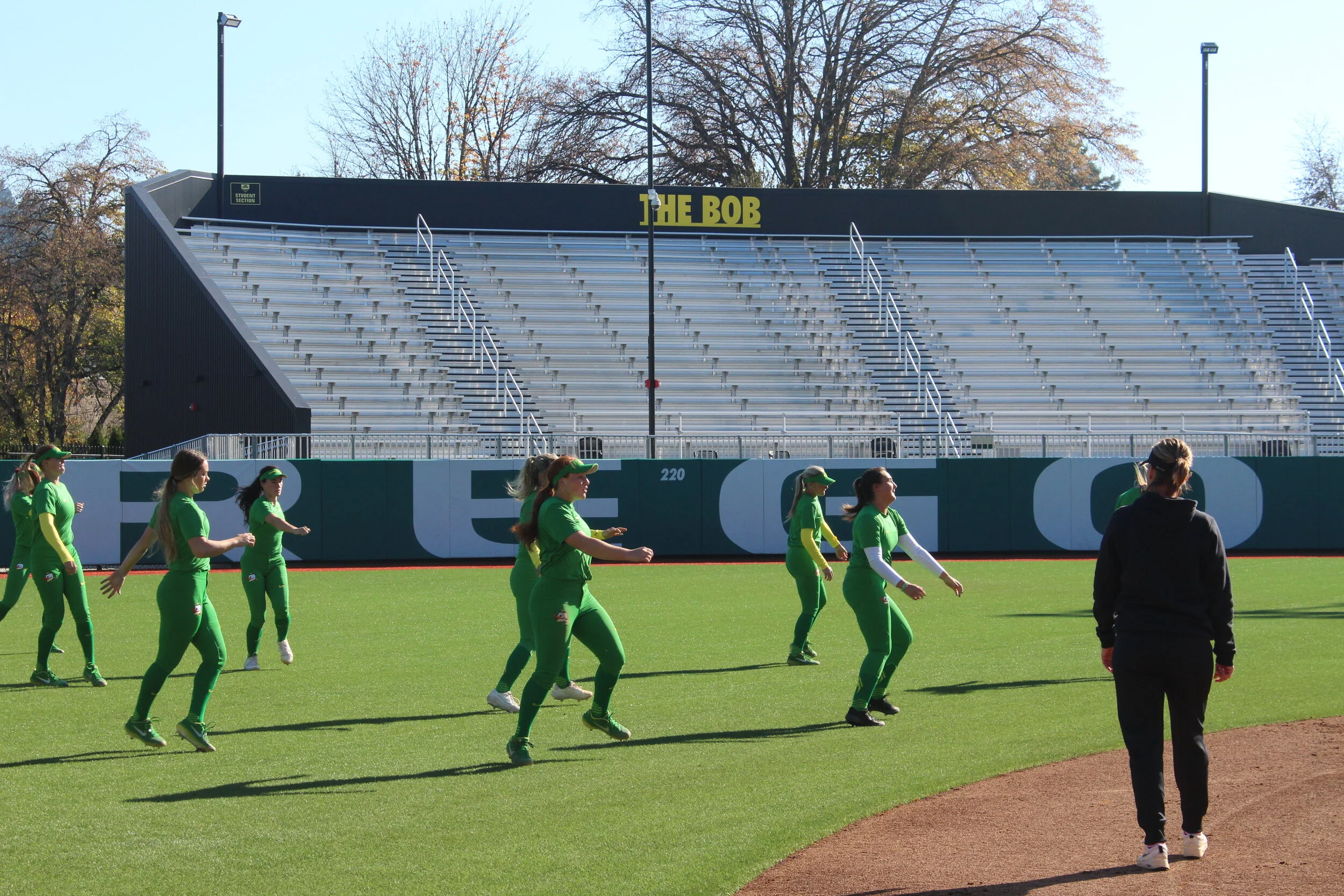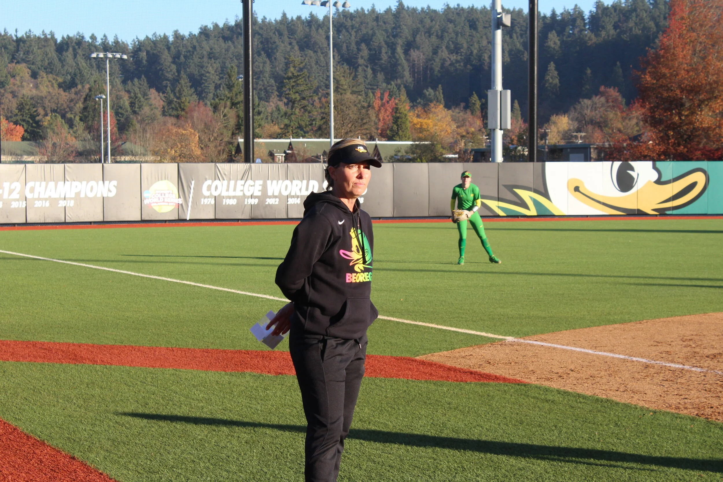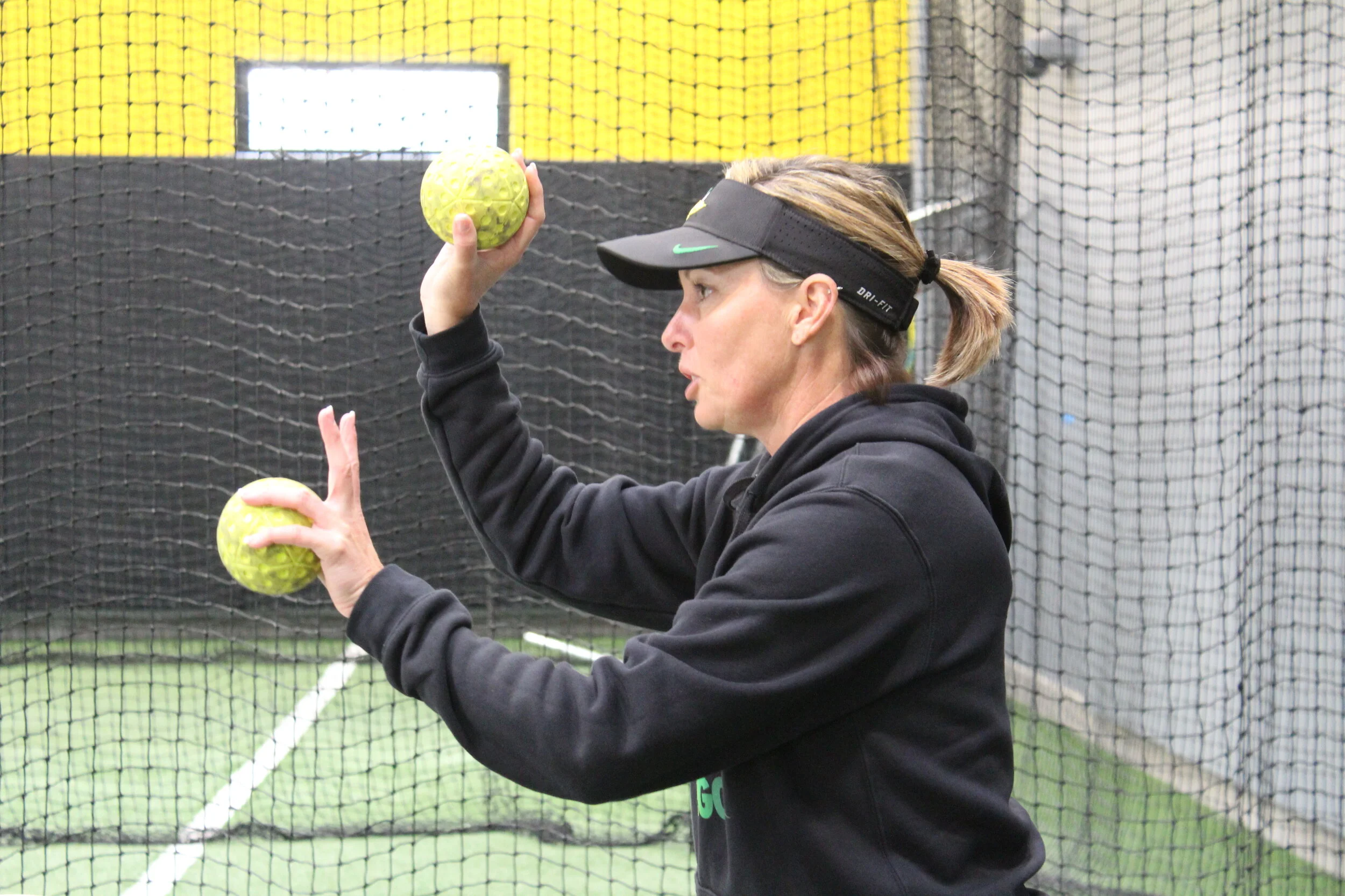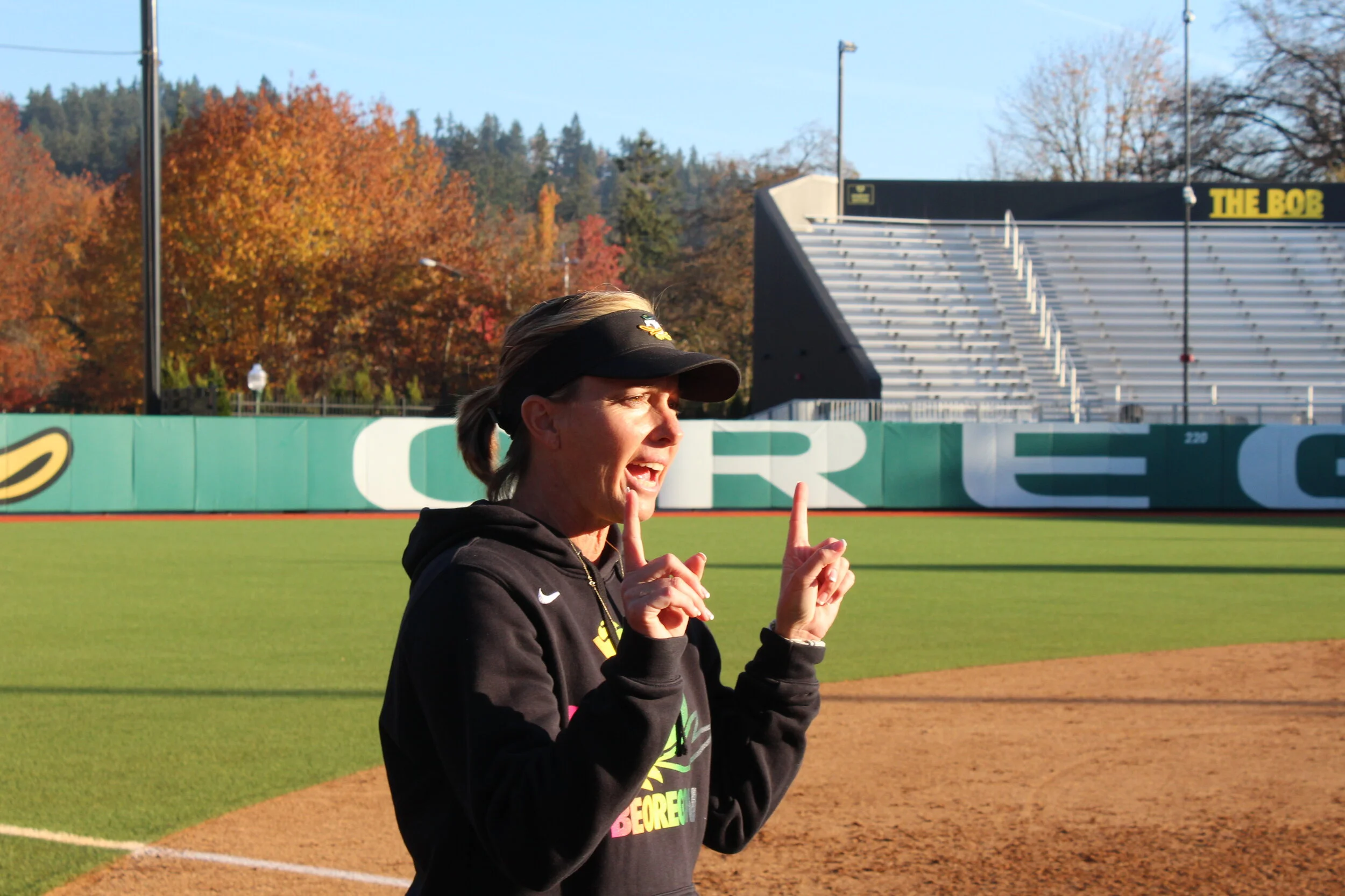 Melyssa Lombardi, Oregon Softball Head Coach Leads Practice